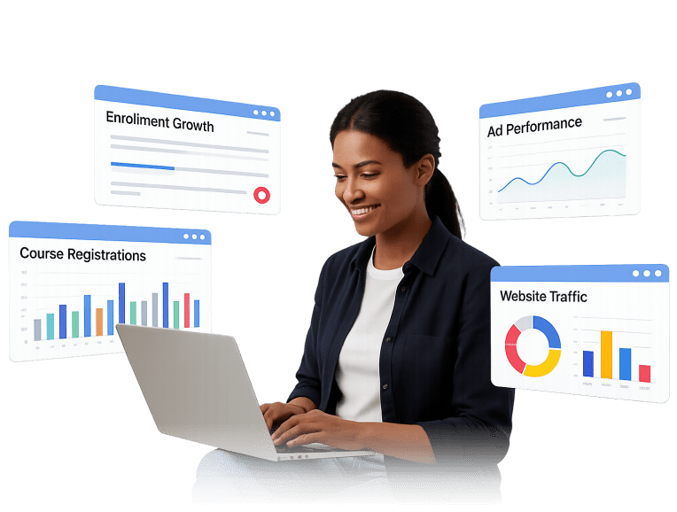 Using Fortune 500–grade performance frameworks, we focus on measurable KPIs that reduce cost per inquiry, improve application conversions, and maximize marketing revenue.